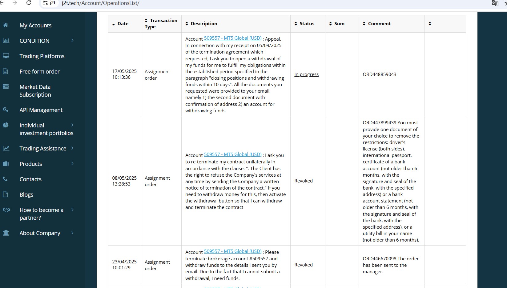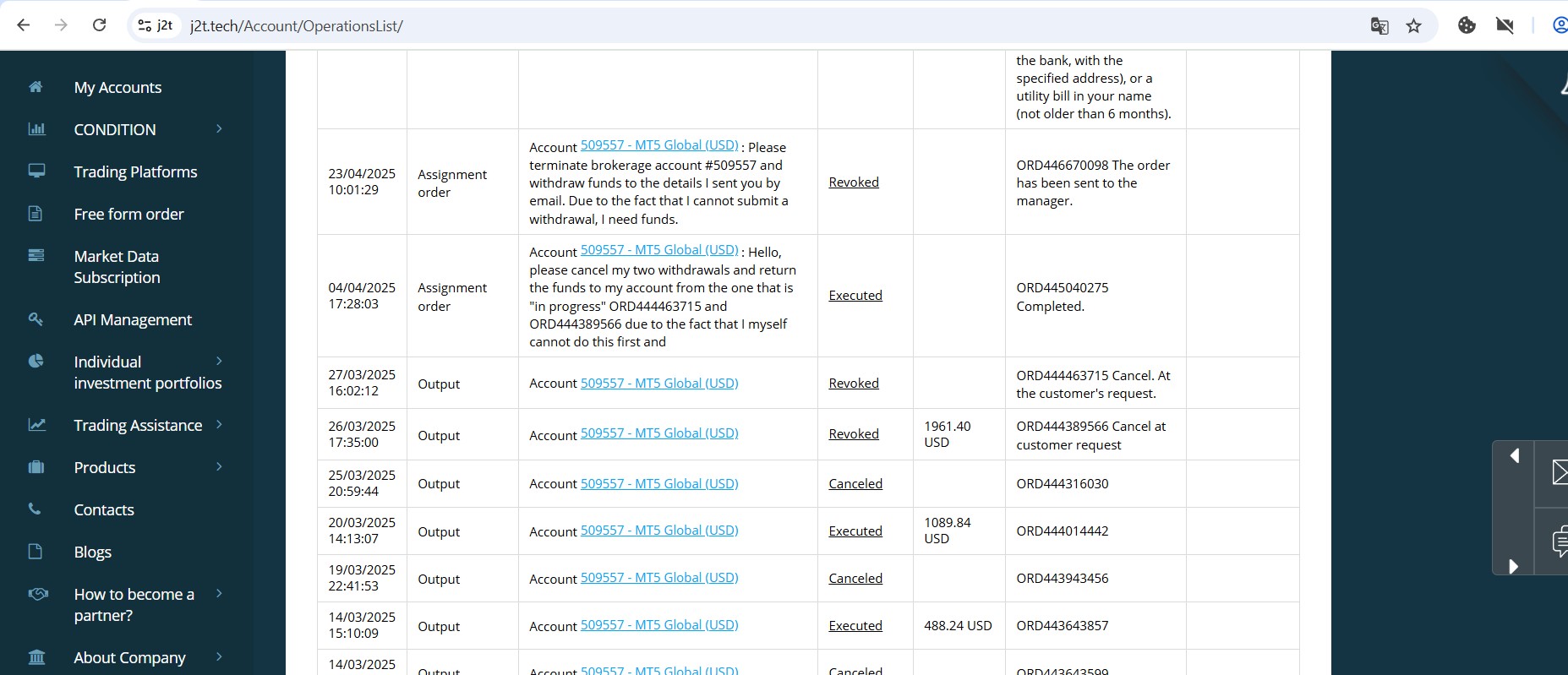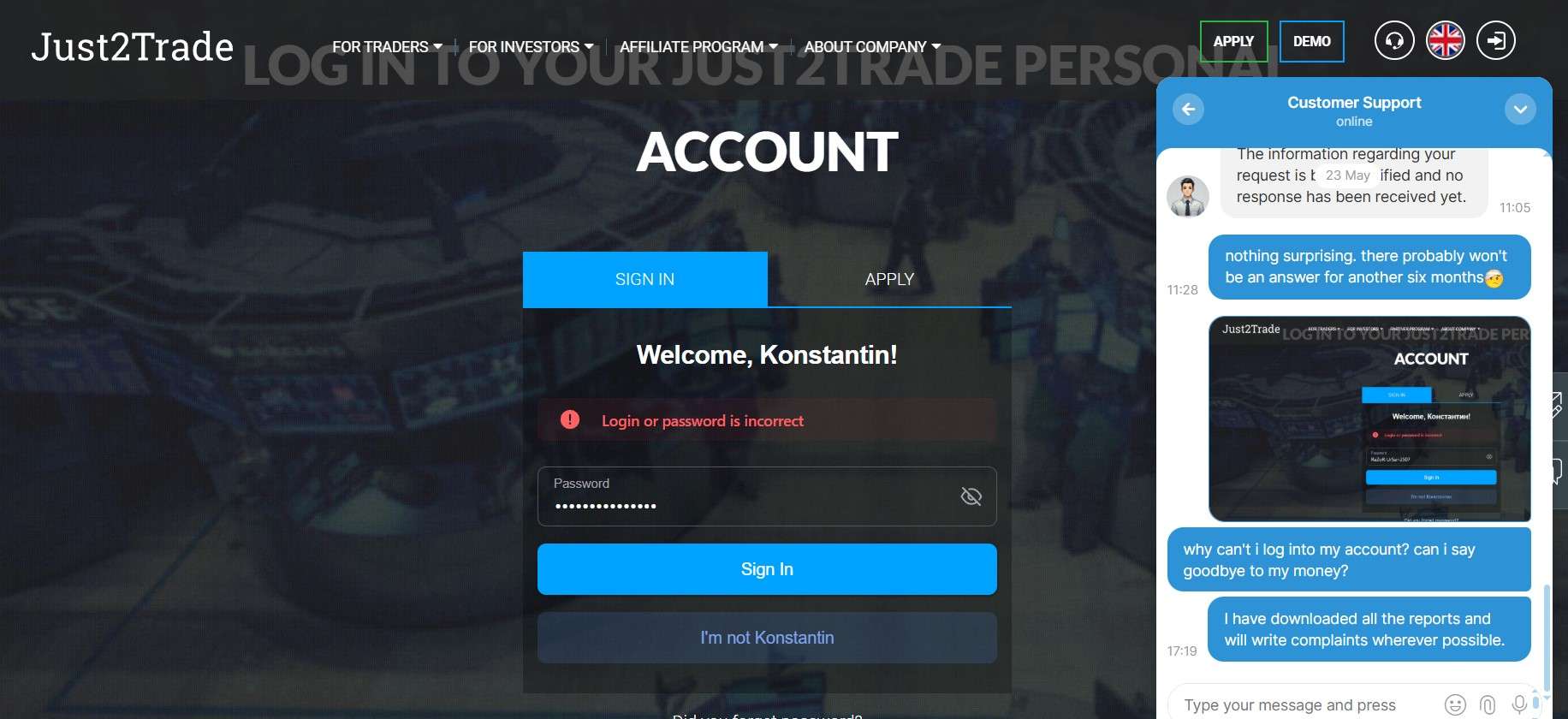 I replenished my account in just2trade, everything was fine, sometimes I withdrew money and it came quickly. But in one of the withdrawals in cryptocurrency, the withdrawal was rejected and I was asked to open a card in a non-sanctioned bank, which I did. After I had the card in my hands, the withdrawal button stopped being active and could not be pressed. I wrote to technical support, they said "the compliance department is dealing with this issue." They always said the same thing. I asked to unilaterally terminate the agreement and withdraw funds, to which I received the answer "they cannot close the account while there are funds in the account." Technical support constantly says the same thing. I submitted a second order to close the account, to which I received a response to send a new second document after sending the second document, a few days later they sent me an agreement to terminate the brokerage account by email. And a request to close all positions and withdraw funds within 10 days. but after logging into my personal account the withdrawal button still didn't become active I wrote to their technical support after two hours I received a response that the restrictions were lifted and I can withdraw, but after logging into my personal account again the button still didn't become active. 9 days have passed since receiving the agreement on termination of the brokerage account and the request to close positions and withdraw funds, but the withdrawal button still does not work. today I received a response "To consider the possibility of withdrawal, please provide the details of an account in dollars/euro outside your country" that is, you can deposit as you wish with cryptocurrency, through a bank, but you can't withdraw, and now in general, run off to another country, open an account and we will only consider whether there is a "possibility of withdrawal" It is 100 times better to think than to deposit money here