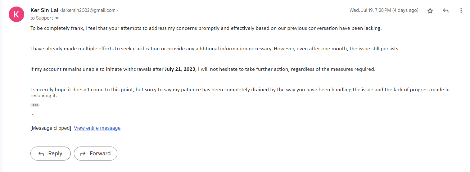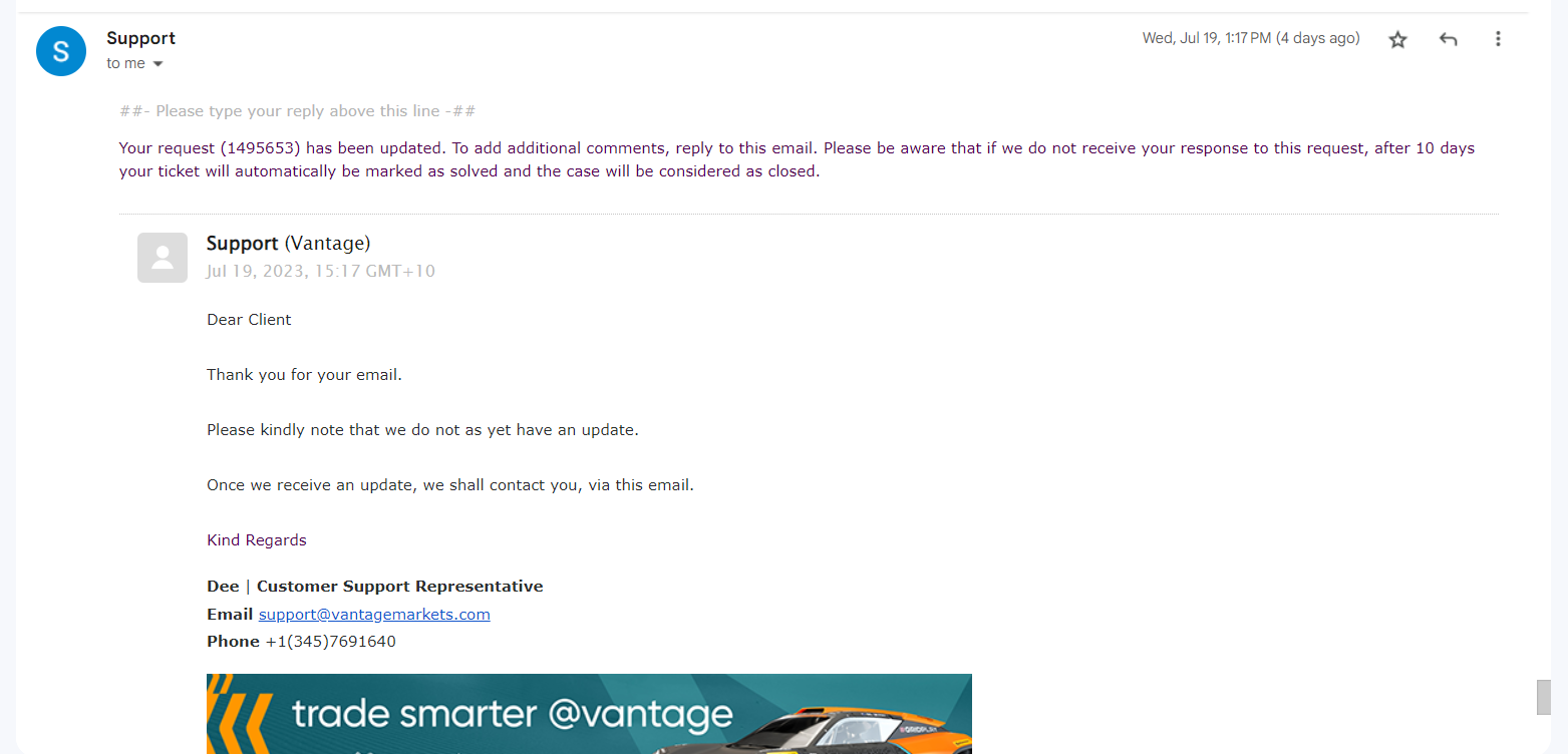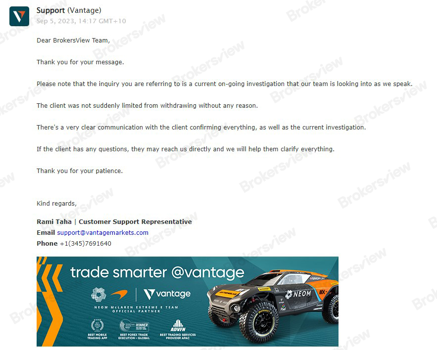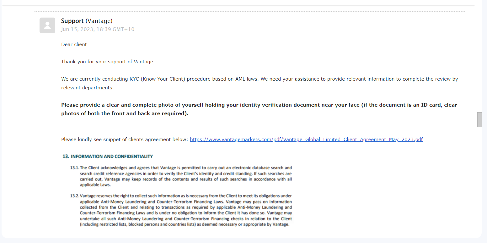 Hi there,I am writing to bring to your attention a serious issue I have encountered while using Vantage brokerage services. I am a client at Vantage and have been experiencing significant difficulties with withdrawing and removing funds from my account.Over the past month, I have attempted to withdraw funds from my account at Vantage, but to my dismay, I have been unable to do so. There have been no prior notices or explanations provided to me regarding any limitations on withdrawals, which has led to immense frustration and concern on my part.As a responsible and informed investor, I understand that there might be certain regulatory and compliance requirements that brokers need to adhere to. However, I urge you to communicate these restrictions clearly and transparently to your clients, especially when it impacts their ability to manage their own funds.I kindly request a thorough investigation into this matter and a detailed explanation for the sudden limitation on withdrawals and fund removal from my account.Thanks.