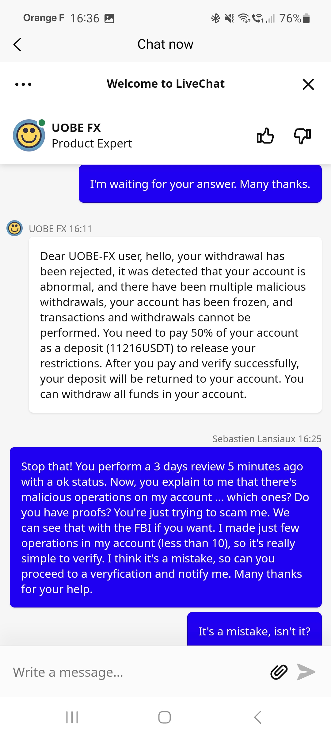 I paid fees to UOBE FX and still can't get my withdrawal