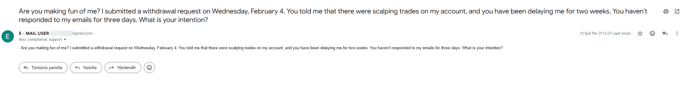 When I requested a withdrawal, the company accused me of scalping. Although scalping was stated as prohibited in their agreement, there was no clear explanation of what qualifies as scalping or the minimum holding time required. Despite the lack of clarity, they deleted $2,400 of my profits.