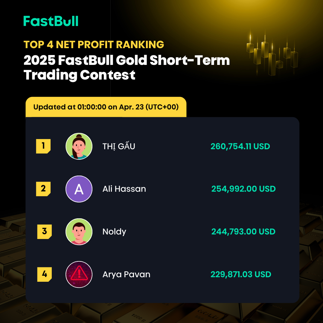 Important Reminder: The FastBull Gold Short-Term Trading Contest will conclude on May 1, 2025, at 00:00 (UTC +00)! At that time, the top three ranked traders will share a total of $3,500 in cash prizes!