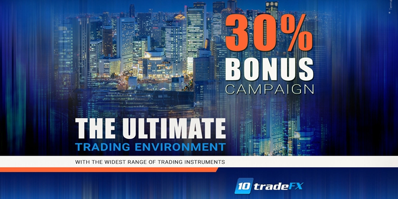 10tradeFX launches a promotion on its website. The 30% bonus campaign is provided to its clients with a maximum bonus allowance up to $3000.