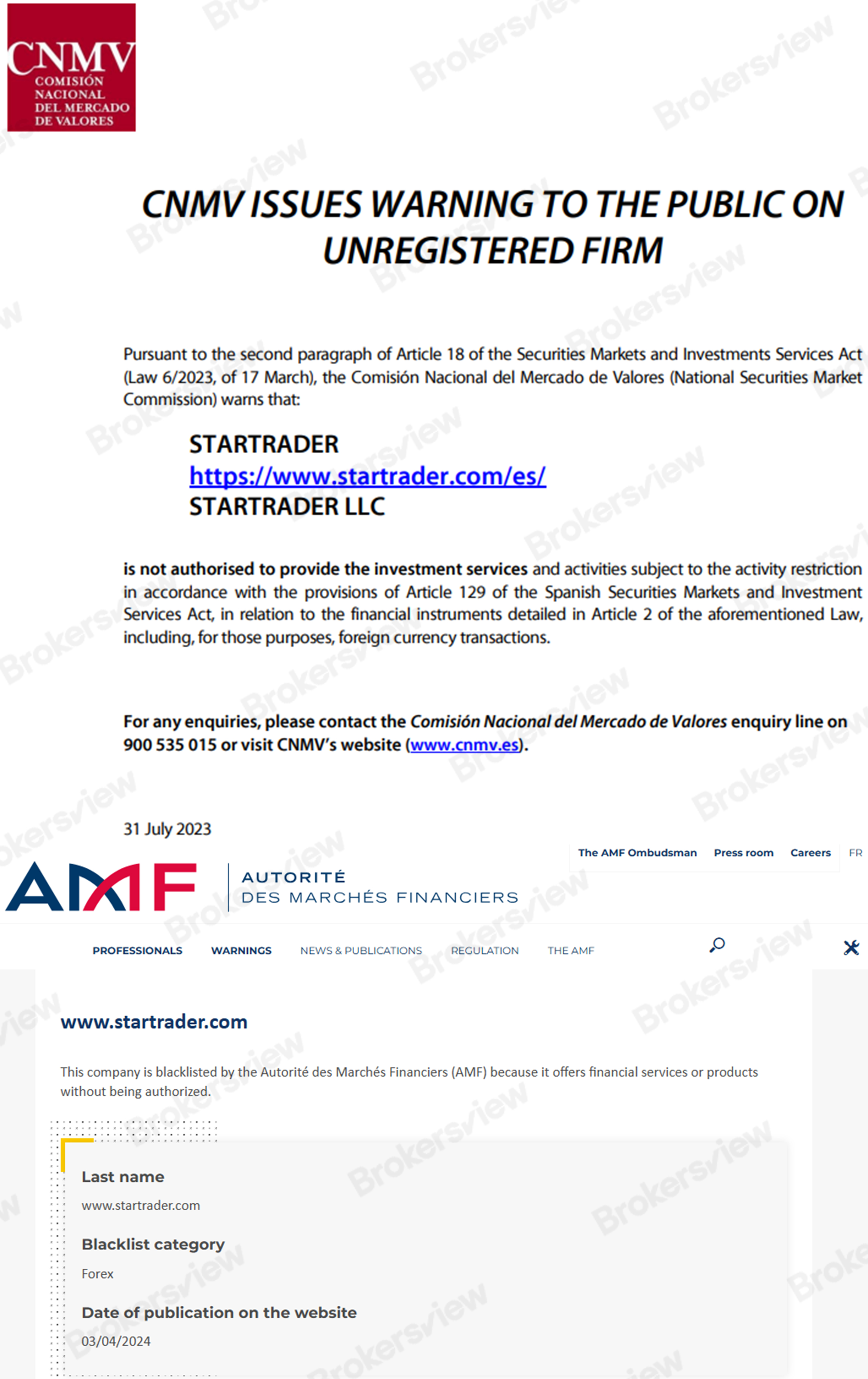 Despite holding multiple licenses, STARTRADER has been flagged by prominent regulators, including Spain’s CNMV and France’s AMF, for allegedly offering financial services or products without proper authorization.