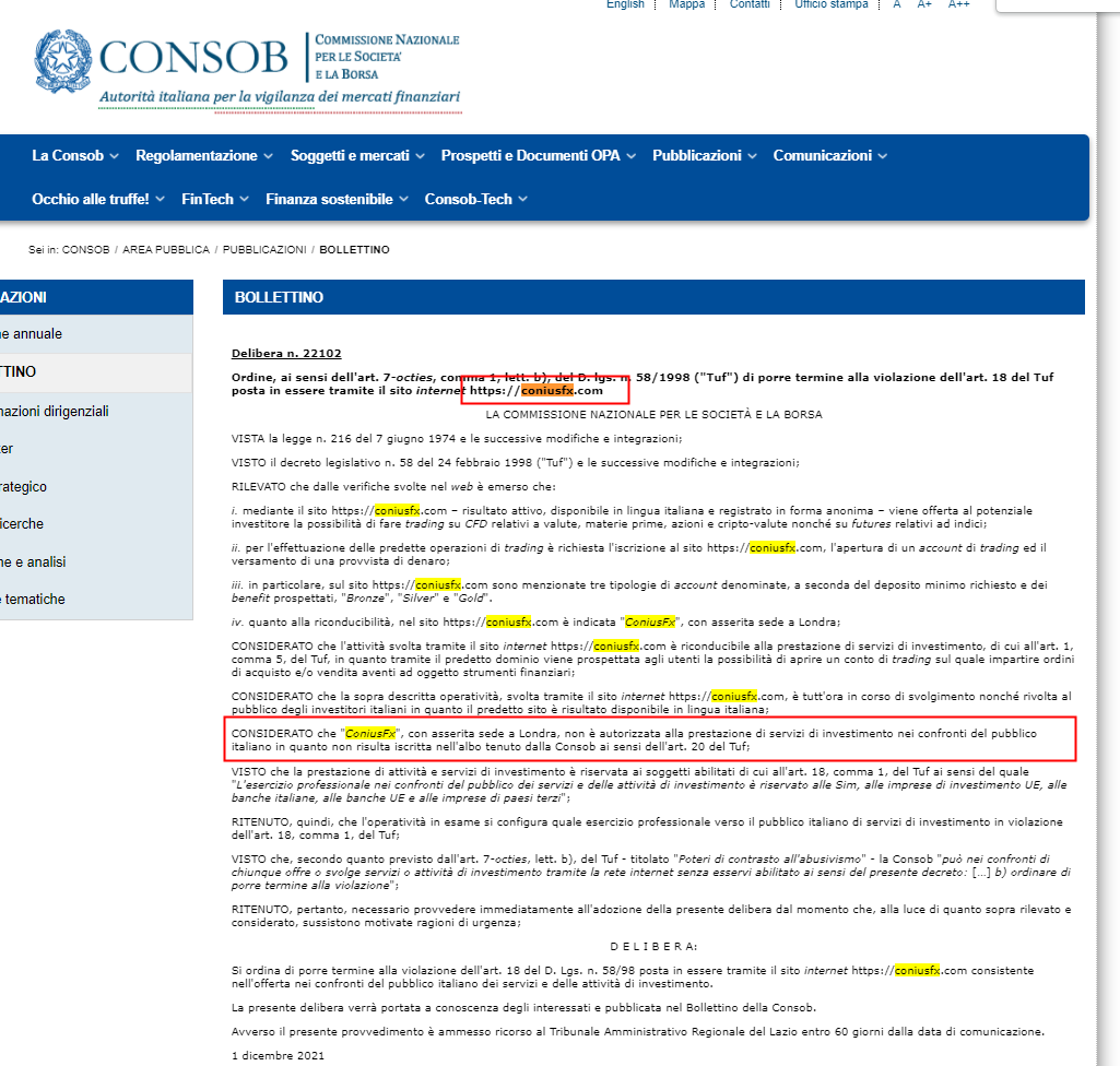 What's more, based on the information we hold, we learned that the scammer was warned by Italian regulator CONSOB, giving the reason that it operates and attracts clients without legal licenses.