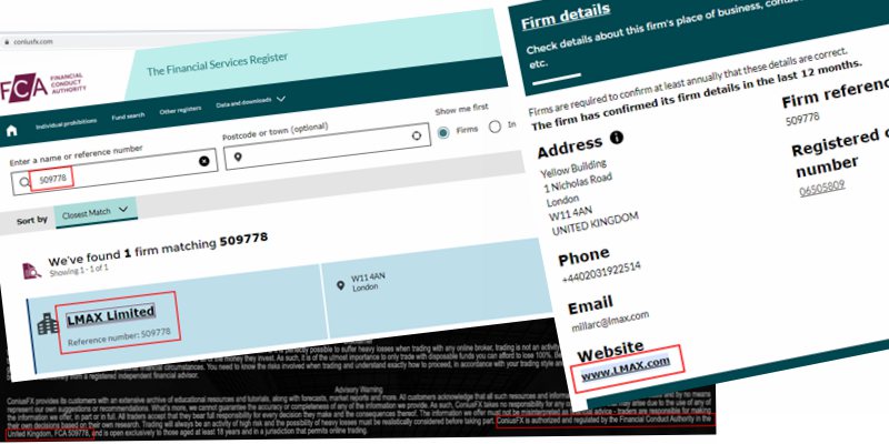 According to its homepage, the entity claims that it is regulated by one of the world's leading financial jurisdictions, their clients can rest assured that they are trading with a safe and secure company. In other words, it shows on the bottom of its homepage that ConiusFx is regulated by the Financial Conduct Authority of the UK (FCA) under the license #509778. However, searching on FCA registry, we found the license number the fraud claimed belongs to another broker - LMAX Limited, an FCA-regulated firm owns a single approved domain address - www.LMAX.com, which obviously has no association with ConiusFx or coniusfx.com. Therefore, ConiusFx is an unauthorised firm that uses the details of a regulated entity when offering products and services, and we can conclude that it is a scam.