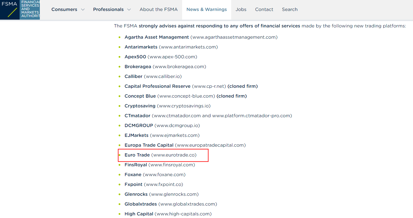 Financial authorities issued public warnings against Eurotrade