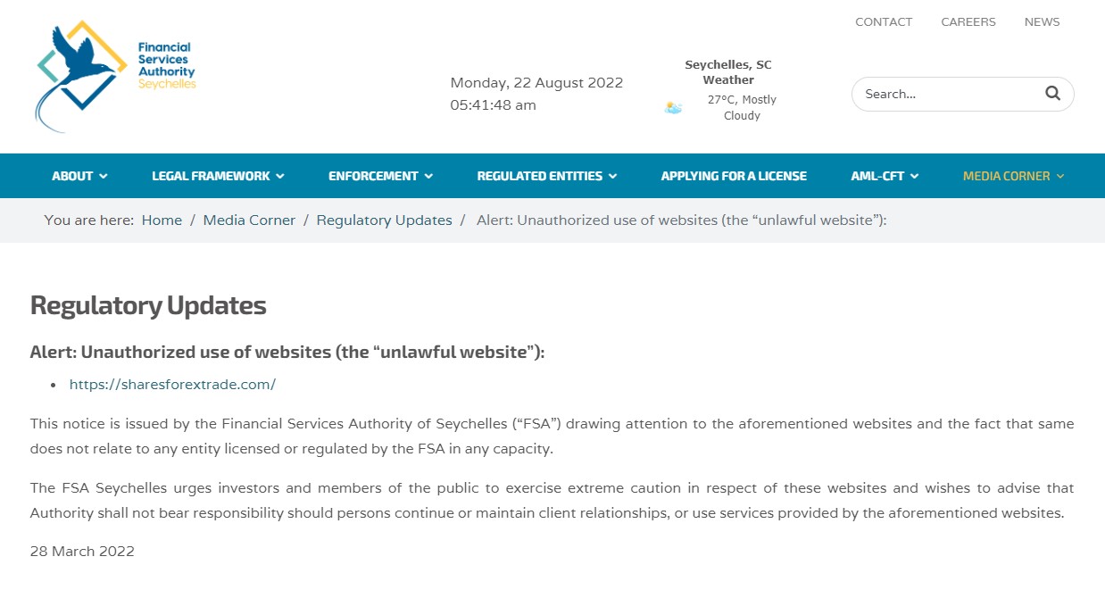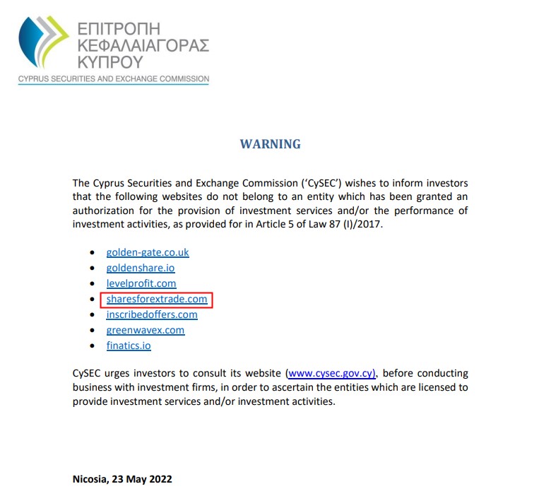 And one of the fraudsters - Sharesforextrade - is also warned by CySEC.