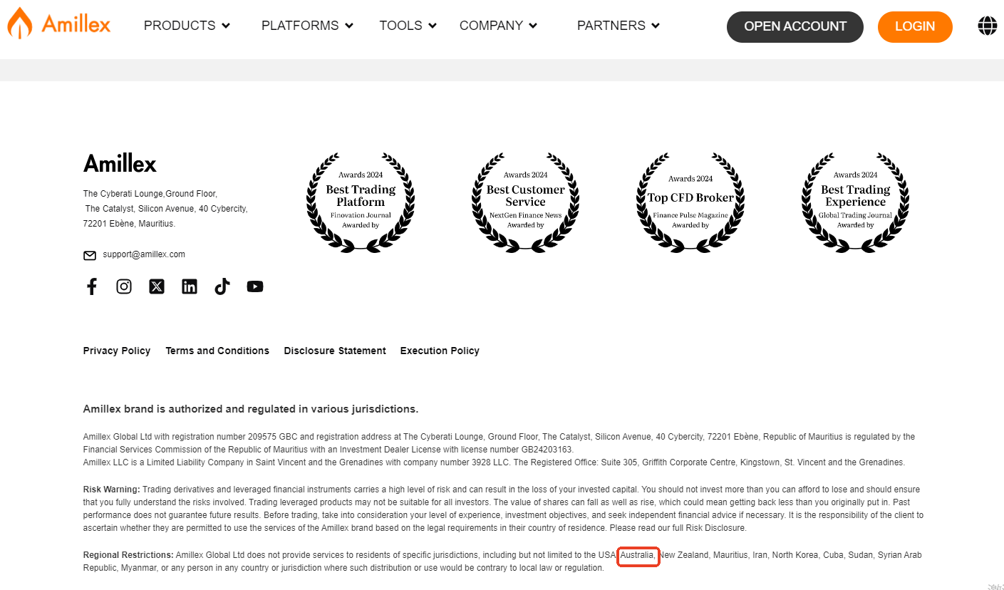 However, further checking revealed the key issue: since May 29, 2025, this ASIC license is only permitted to provide services to wholesale clients, not retail clients. This means the company cannot act as a platform providing trading services to retail users, nor is it the entity used by Amillex Global for its global retail business. Therefore, they neither dare nor are able to display this license on their website and clearly indicate that they cannot provide services to Australian clients.