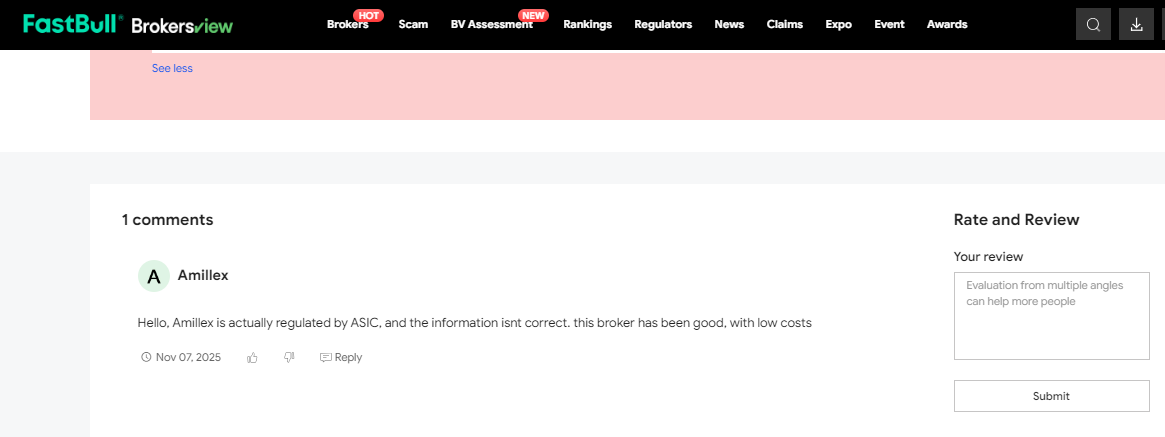 Despite this, some forex information sites label Amillex as “dual-regulated,” which further misleads investors and echoes the user’s allegation of “paid placement.”