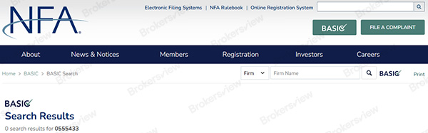 Additionally, Loyal Primus claims to be registered with the National Futures Association (NFA) under NFA ID 0555433. However, a search of the NFA database yields no record of the broker, indicating falsehood on its claimed regulatory standing in the U.S.