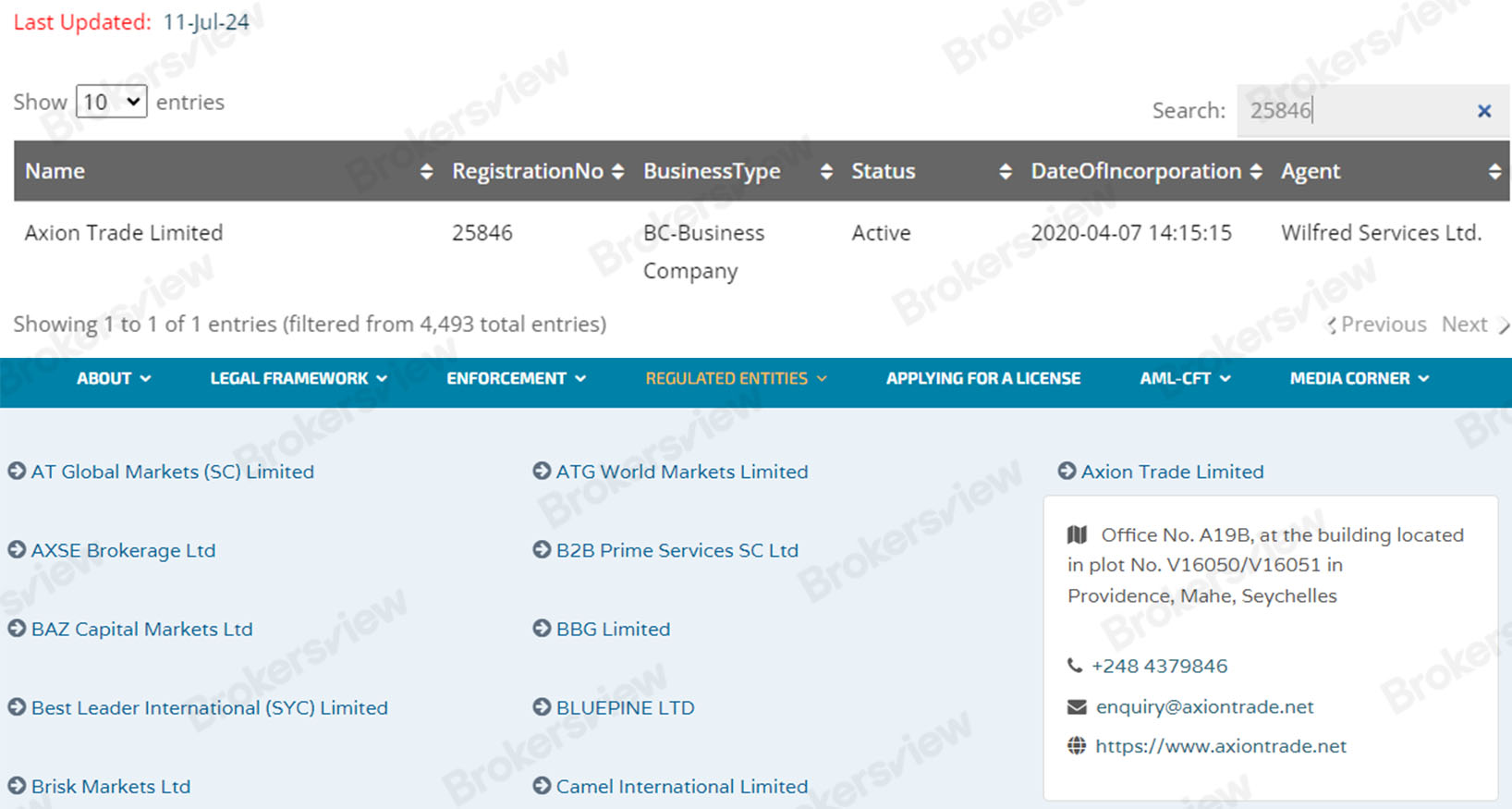 Axion Trade is registered with the Financial Services Authority of St. Vincent and the Grenadines (SVG FSA) and is licensed as a securities dealer in the Seychelles. However, it is worth noting that the SVG FSA also does not regulate forex activities and does not issue such licenses, whereas the Seychelles FSA, a regulator offering offshore supervision, has a relatively lax oversight framework.