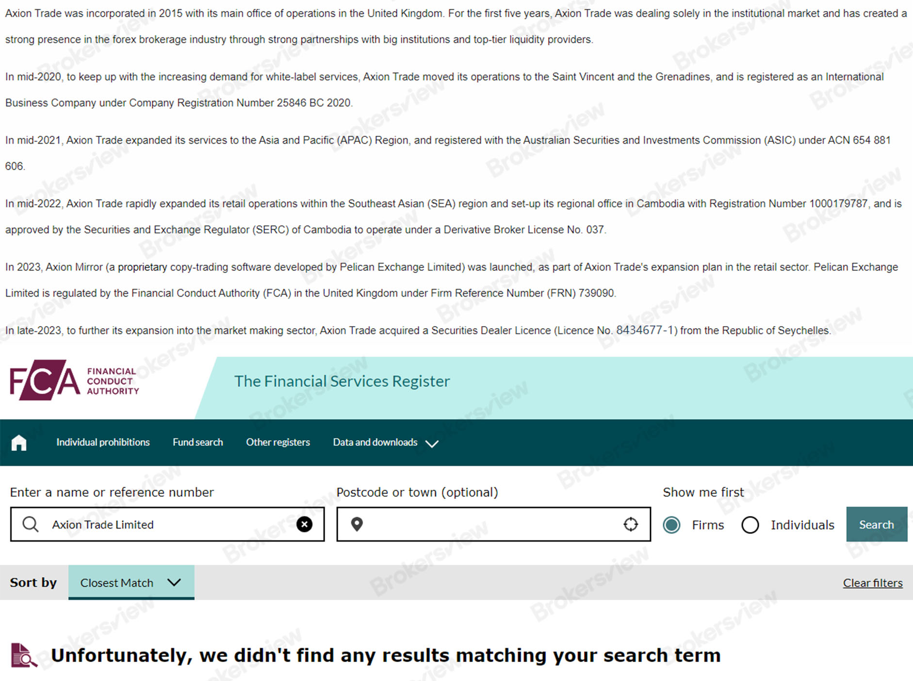 As a result, Axion Trade is subject to inadequate oversight, which may not be sufficient to provide good protection for investors' funds, and some of the broker's claims about its regulatory information are misleading. It raises serious concerns about the broker's compliance with industry standards and regulatory oversight.