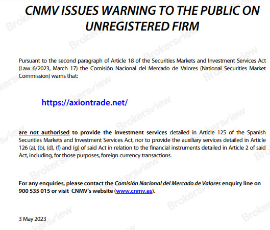 In conclusion, the evidence against Axion Trade paints an alarming picture of questionable practices. For investors seeking a secure and transparent trading experience, it is imperative to exercise caution and consider reputable alternatives with strong regulatory oversight. Safeguarding financial interests remains paramount in the ever-evolving landscape of online trading and BrokersView may be one of the best sources to check the credibility of your prospected intermediary.