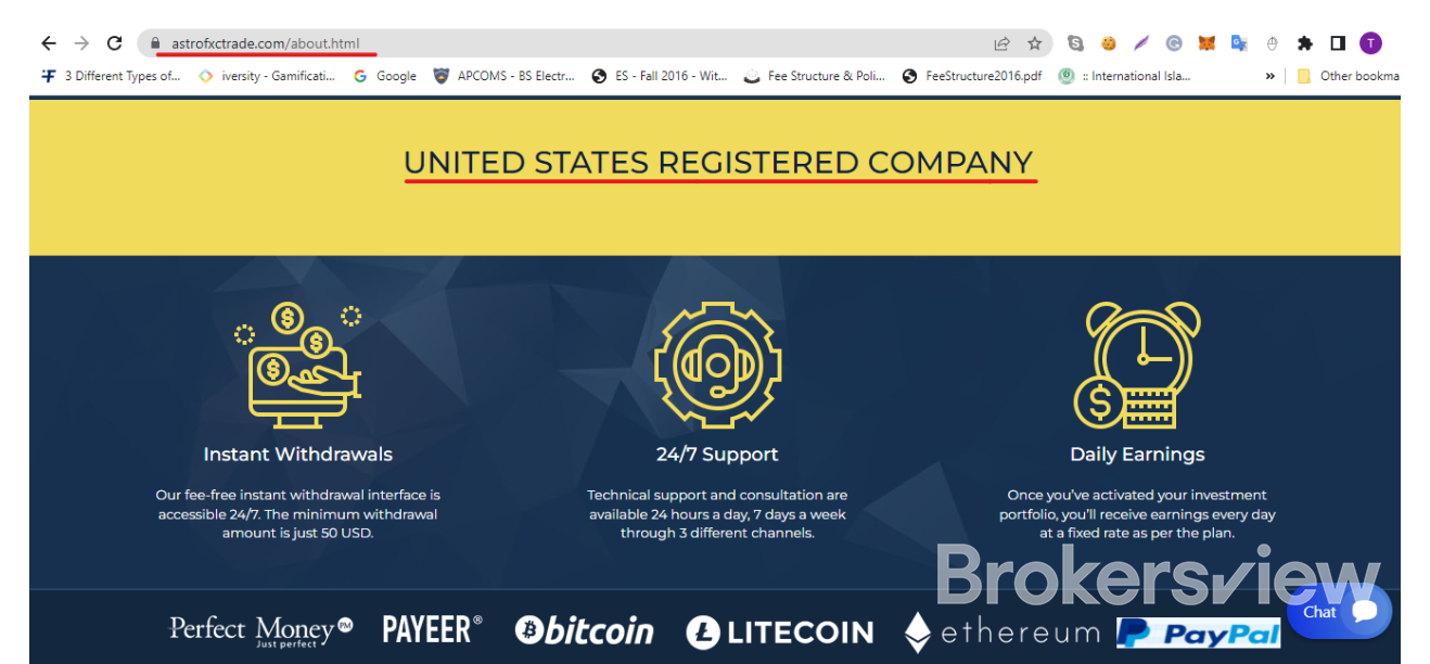 Astro FXC Trades (https://astrofxctrade.com/index.html) is a fund management company based in the United Kingdom. The broker claims to offer budgeted investment solutions with a higher rate of return across multiple financial markets, such as forex, stocks, and binary options. The company anticipates clients to select an investment plan starting with a minimum $300 deposit ranging up to $50,000 and wait for a couple of weeks to receive profits. According to the broker, it diversifies clients' investment portfolios to reduce risk exposure and increase the profit-making potential. However, it doesn't talk about its regulatory status and if there is any funds compensation scheme in place. If you wish to join the broker, bitcoin is the only supported payment method available. The company offers round-the-clock customer support via live chat, telephone, and email.