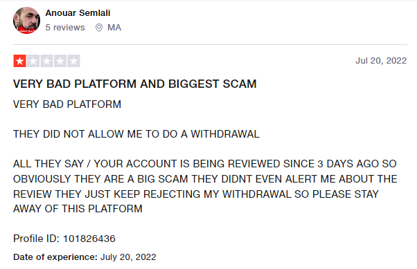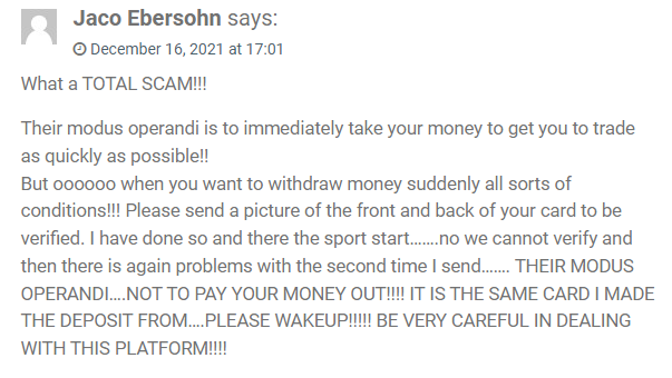 However, it starts behaving quite the opposite after receiving funds from you. In addition to ceasing communicating with you, it sometimes blocks access to your account. Many clients have reported that they could never withdraw their funds from the company.