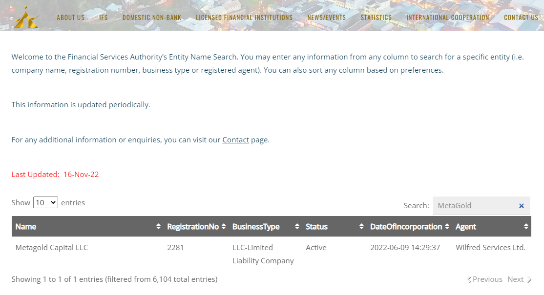 No, MetaGold Capital is not regulated. The company does not claim to have any regulations. We cautiously searched the SVG FSA database and found it to be a registered entity. However, it is worth mentioning that SVG FSA neither monitors nor issues forex licenses. Therefore merely being registered does not imply having the authorization to provide financial services.
