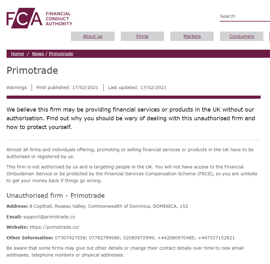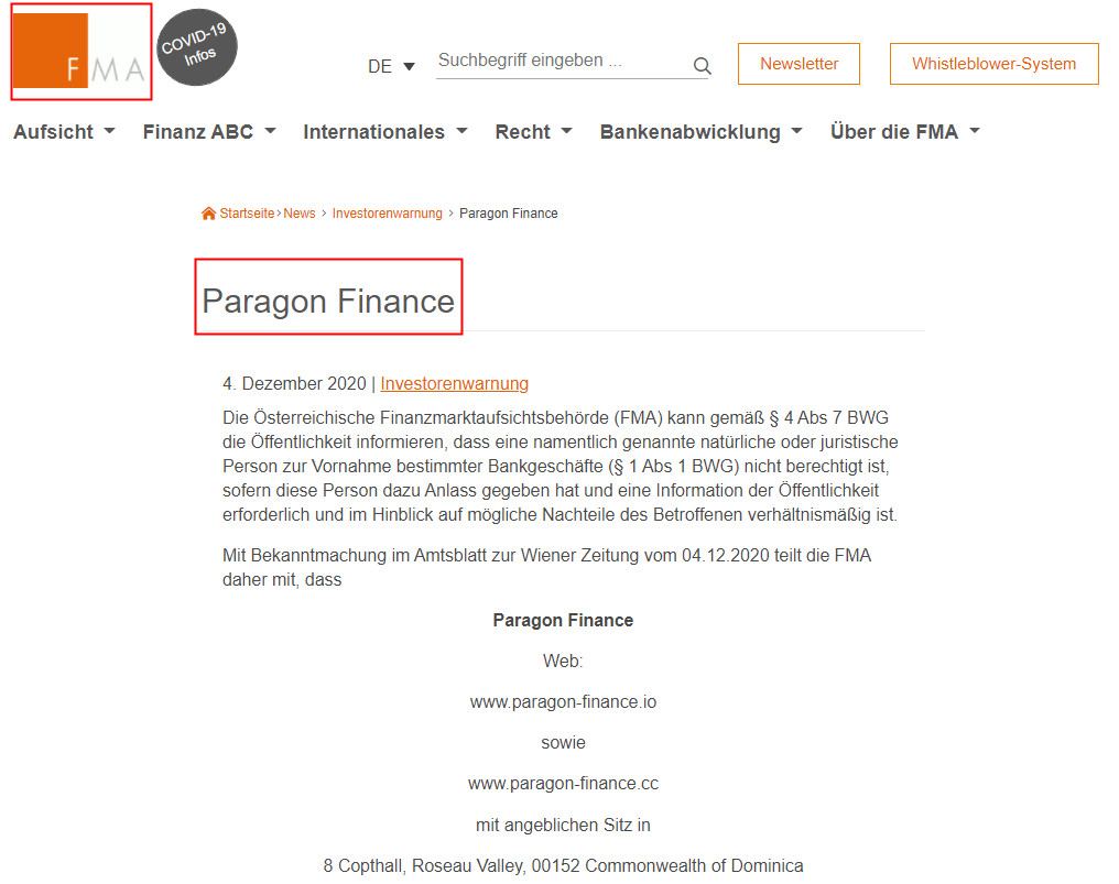 Further, HashTrade claims to be a trading name of Xertz Consulting Ltd., which is registered at 8 Copthall, Roseau Valley, 00152, Commonwealth of Dominica. And we found that there are some other fake brokers also registered with the address, including PrimoTrade, which was blacklisted by the UK’s Financial Conduct Authority (FCA) on February 17 2021, and Paragon Finance, which was alerted by the Austrian Financial Market Authority (FMA) on December 4 2020.