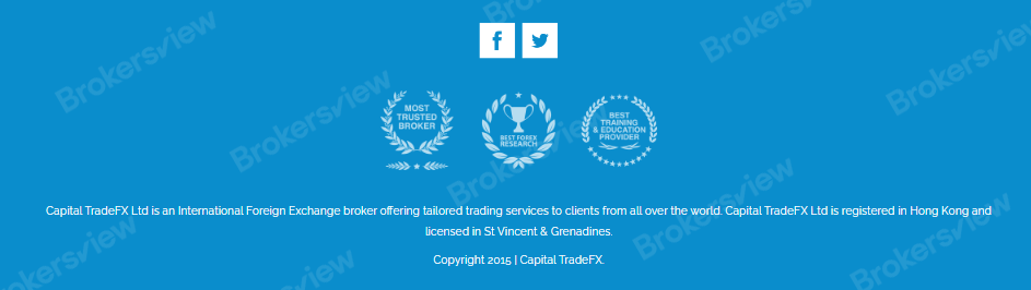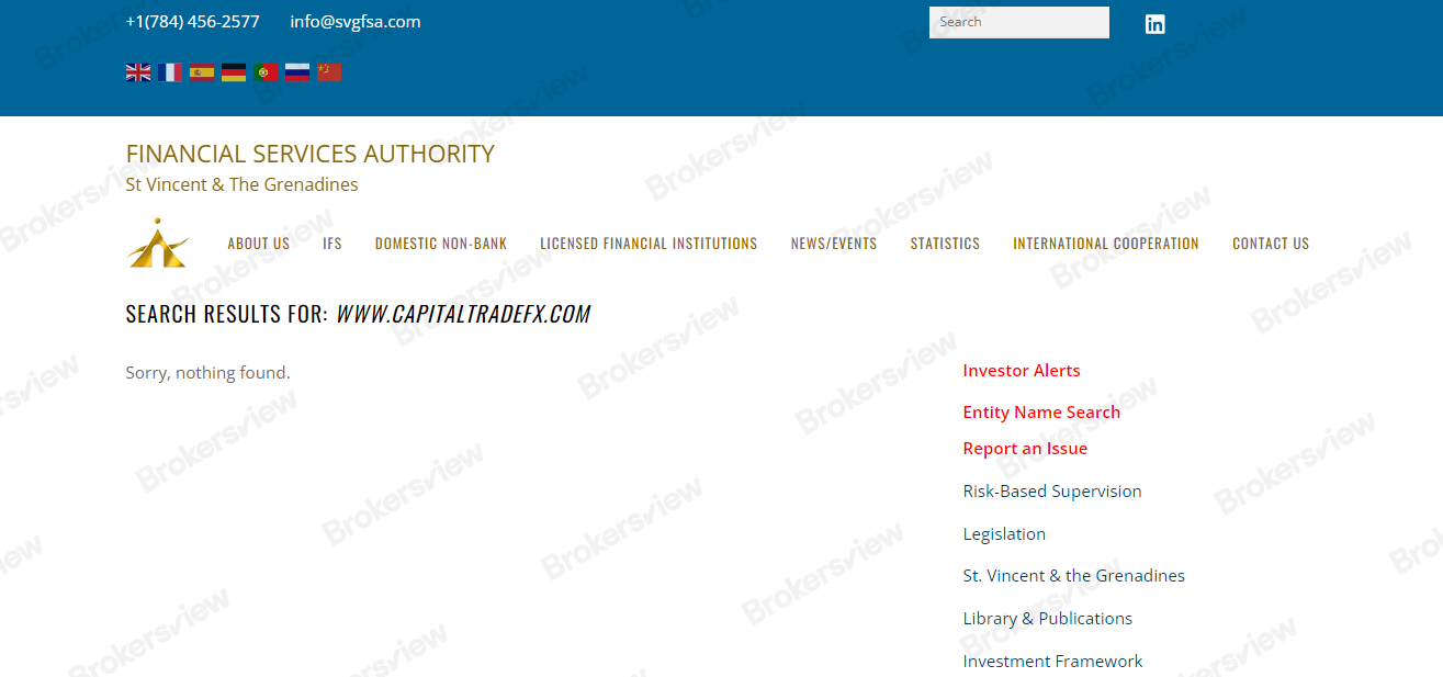 No! Capital TradeFX is not a regulated broker. According to the broker's website, the company is registered in Hongkong and licensed in St. Vincent and the Grenadines (SVG). However, St. Vincent and Grenadine's respective regulator FSA (Financial Services Authority, a/k/a SVGFSA), neither regulates nor issues licenses to forex intermediaries.