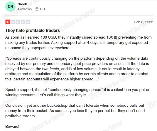 Clients' reviews of Spectre.ai have been inconsistent on BrokersView. While some users have reported positive experiences with the platform's interface and customer support, others have complained of technical issues, difficulty withdrawing funds, and even accused the firm of scam activities.