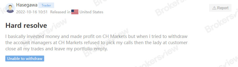 CH Markets doesn't hold a good reputation among traders. According to customers, the company first allows them to make profits. However, when clients initiate withdrawal requests, the company withholds their funds for no reason. What’s more, the broker sometimes even threatens to block their access.