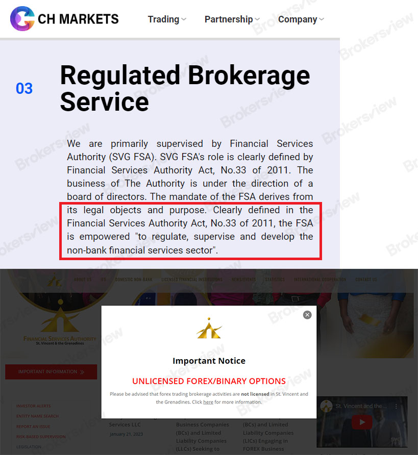 Third, the broker tries to convince clients that the SVGFSA holds every right to regulate financial intermediaries while the body posts a disclaimer in this context.