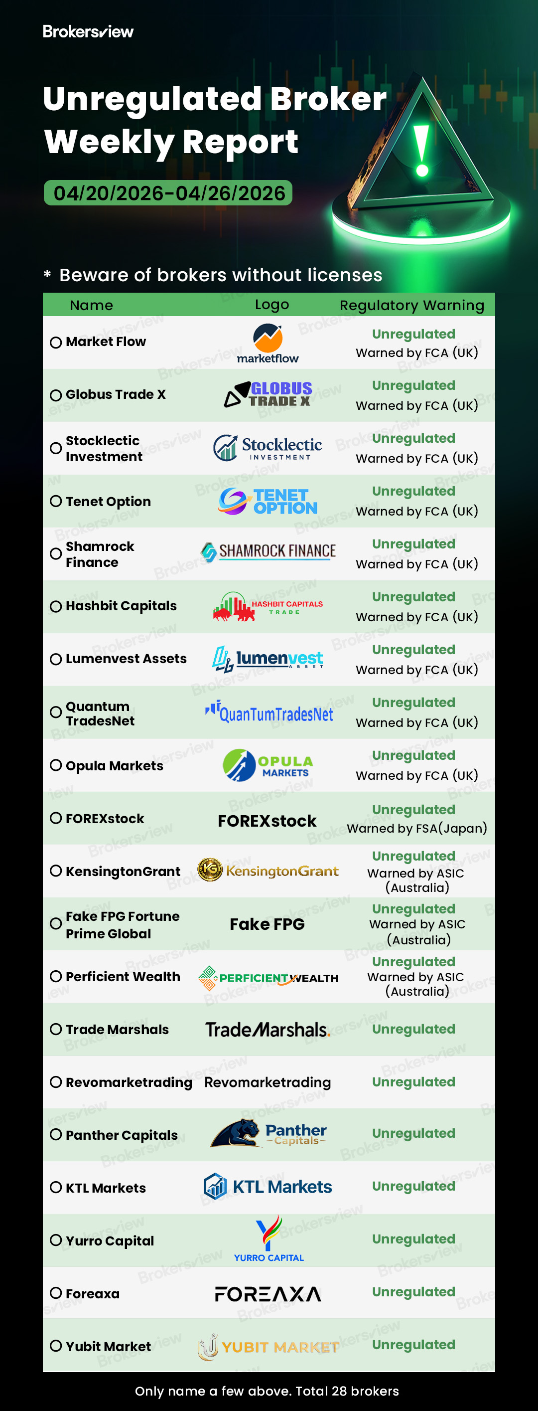In its latest weekly investigation, BrokerView has flagged a total of 28 suspicious trading platforms, with multiple regulators issuing warnings against unauthorized and potentially fraudulent brokers.