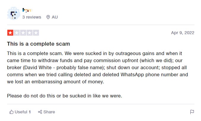 This cunning broker shut the investor's account down and cut down all the connections when it came time to withdraw funds and pay commission.
