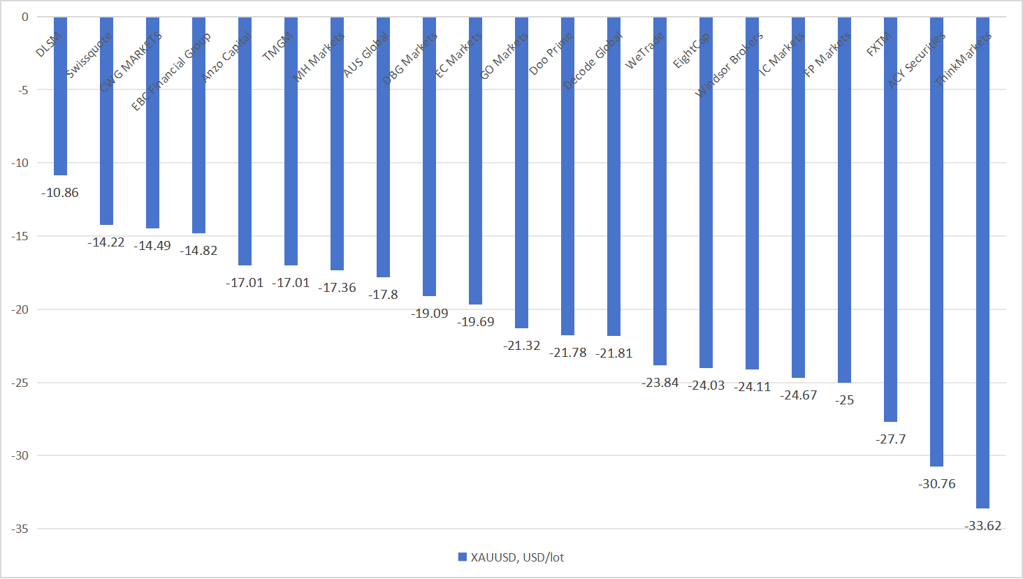Despite being a top performer for forex swaps, Doo Prime (-21.78) and Decode Global (-21.81) rank below average for gold, while ThinkMarkets (-33.62) and ACY Securities (-30.76) have some of the most punitive gold swaps.