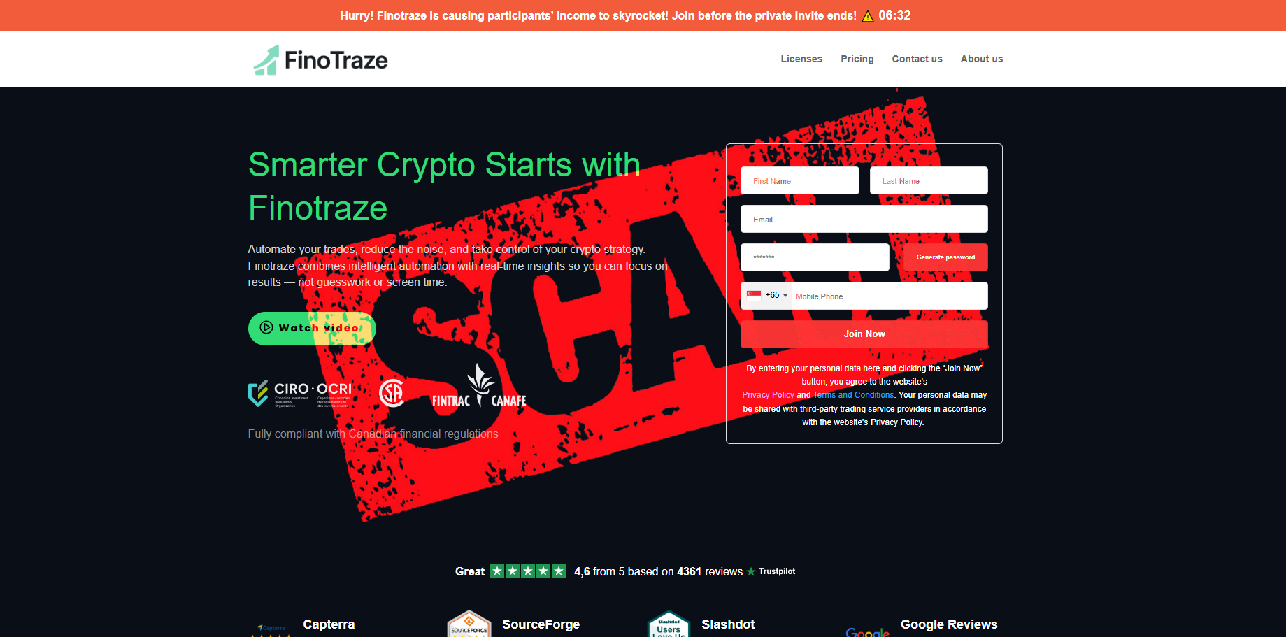 According to CIRO, Finotraze has no affiliation with the organization or its predecessor, the Investment Industry Regulatory Organization of Canada (IIROC). Despite this, the platform falsely advertises itself as “fully compliant with Canadian financial regulations” and “fully licensed under IIROC,” misleading investors into believing it operates under legitimate oversight.