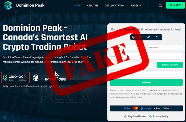 CIRO made it clear that Dominion Peak is not registered with the regulator and has no connection to it. The unauthorized use of CIRO’s branding is intended to mislead investors into believing the platform is legitimate.
