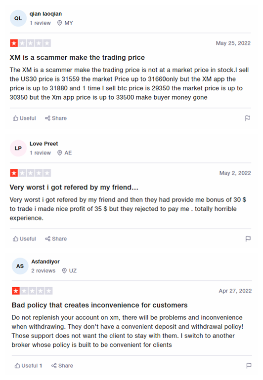 Despite being a regulated firm, XM is unfortunate to have awful clientele feedback. While clients report withdrawal issues, the company also receive critics amid price manipulation, bogus bonus offers, and poor customer support. Let us share a few screenshots of XM customers' feedback on various social and digital platforms, including BrokersView.