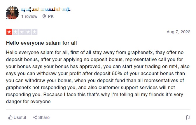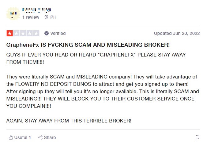 Moreover, some other clients said that the broker's promised bonus on its website was fake. And an investor even accuses GrapheneFx of a "scam".