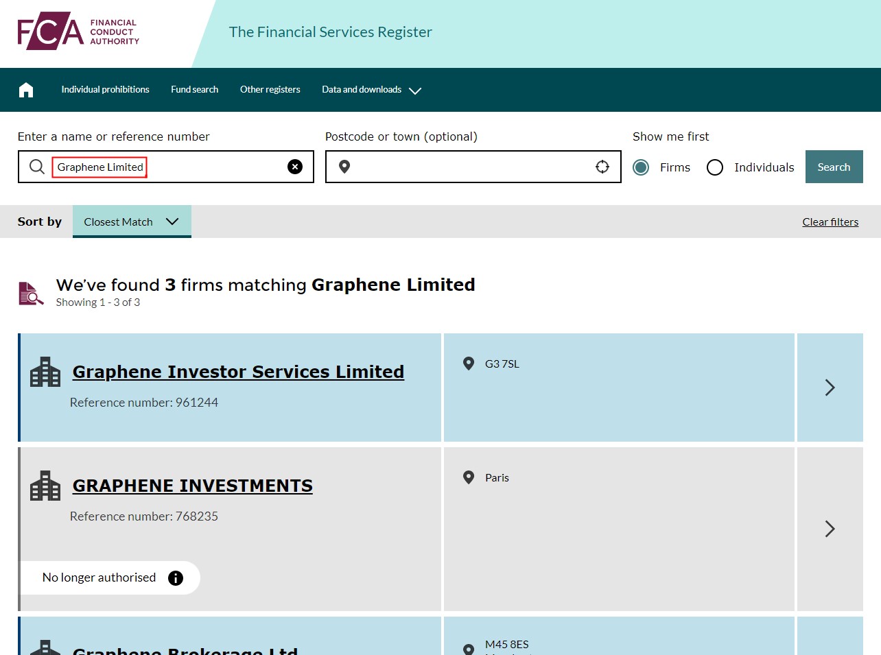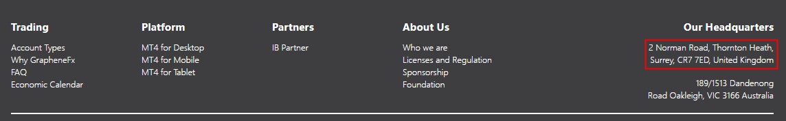 Moreover, now that one of its headquarters is located in the UK as presented on the website, GrapheneFx shall obtain a forex license from UK FCA, but it does not.