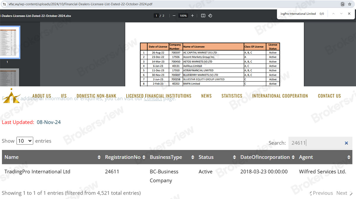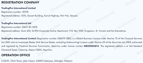 Despite its alleged registration in Vanuatu, TradingPro does not hold a financial license from the Vanuatu Financial Services Commission (VFSC). While it is registered with the Financial Services Authority of St. Vincent and the Grenadines (SVG FSA), this regulator does not oversee forex brokerage activities.