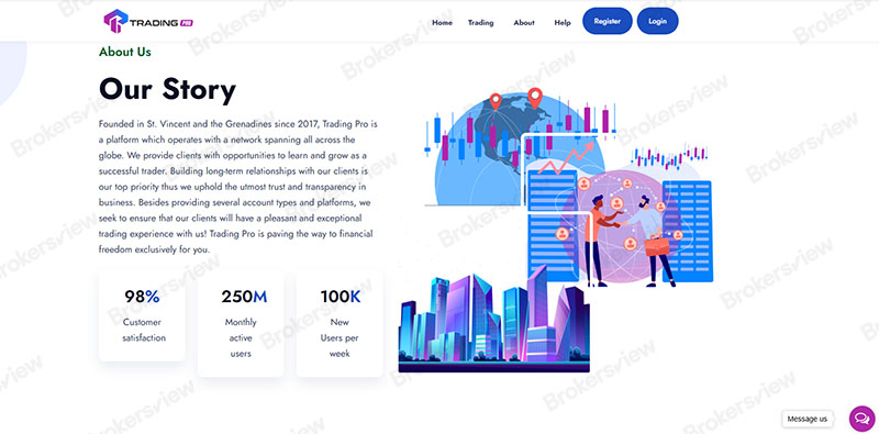 Founded in St. Vincent and the Grenadines in 2017, TradingPro claims to operate a global network.