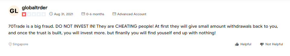 It is not very recommended to trade with 70Trades.