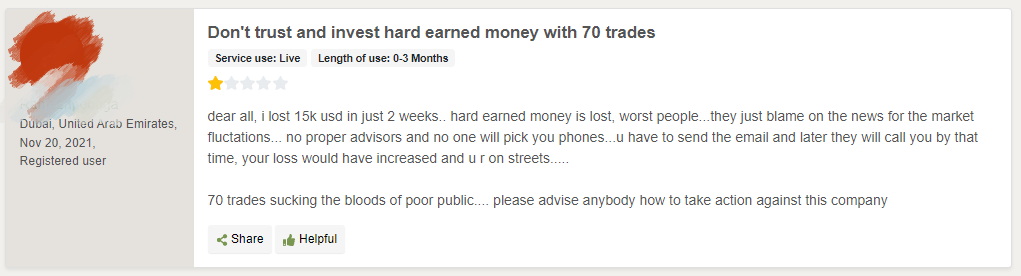What do people say about 70Trades?