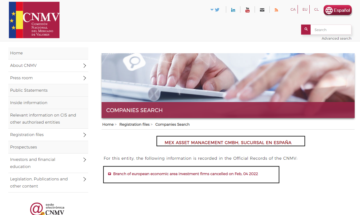 The company’s regulatory status changed from "Supervised" to “No longer Authorised”, which means that the firm had decided to cease to provide any investment services in Spanish.