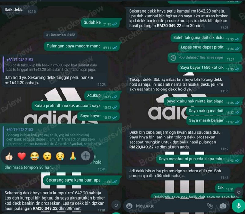 The student could not afford it and thought that the trades have been made much more than her expectations, so she decided to give up the deal, and intended to take out all the principal he had deposited. Surprisingly, her request was refused by the broker! The fee of RMRM1,642.2 still needs to be paid to quit!