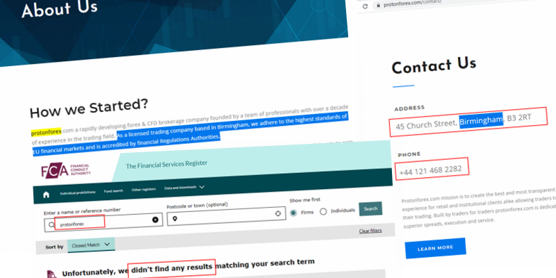 Besides, it also shows it is registered in Birmingham, a UK city. As per the United Kingdom law, any company based in the UK that wants to operate on the financial market needs FCA regulation. As the fraud claims to be located in UK, it must operate with FCA license. However, it has no FCA license. The fact is that the entity is avoiding this rule, because nowhere in the FCA register, we were able to find protonforex.com. That means investors' funds in this broker is unsafe and cannot be protected by any laws. Therefore, it is a scam broker.
