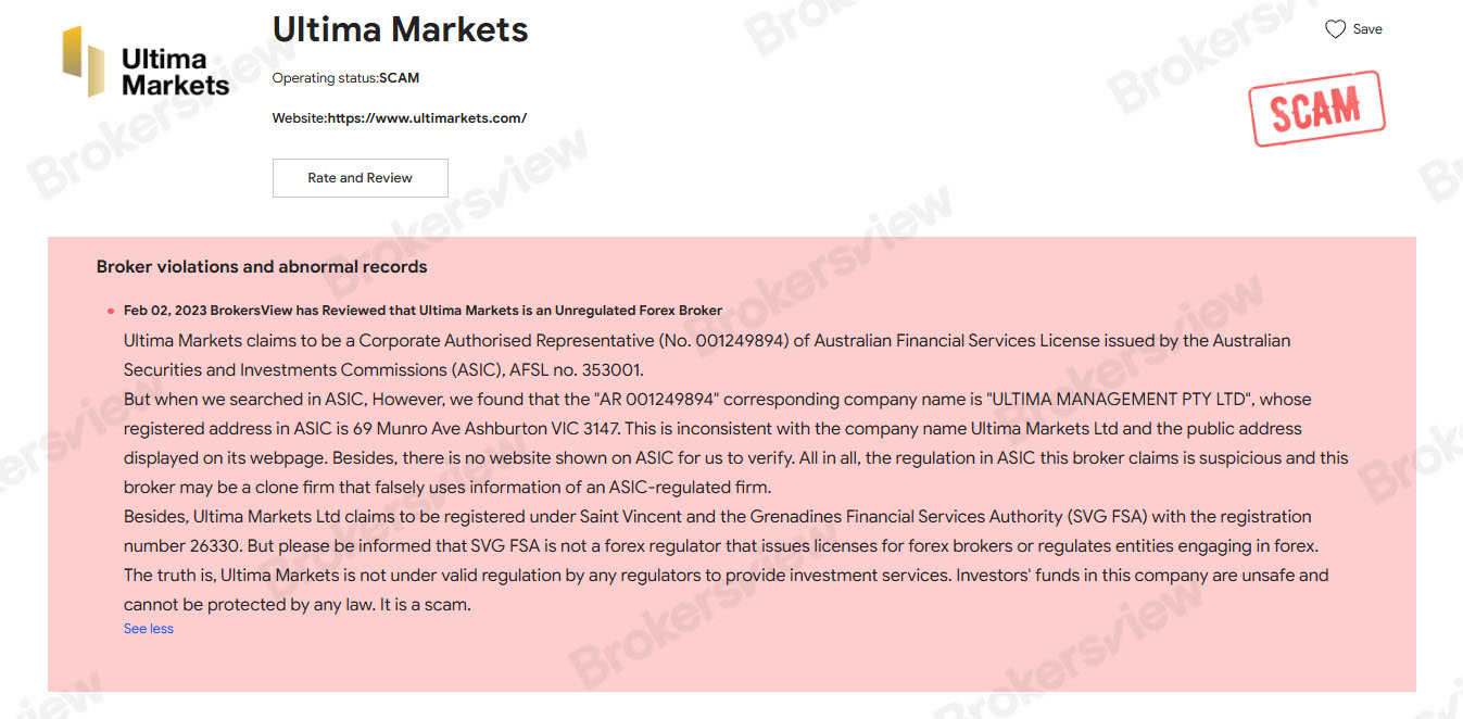 BrokersView has long listed Ultima Markets as a Scam broker. Had traders visitedBrokersView before opening accounts, they would have found warning signs including fake licenses, withdrawal difficulties, and cloned-company claims.