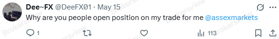 One trader raised a query after discovering open positions that were allegedly placed by Assexmarkets without his authorization. This behavior casts suspicion on the broker’s trade execution practices and potential intervention in client accounts.