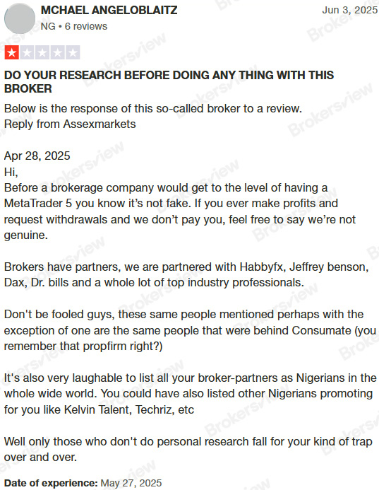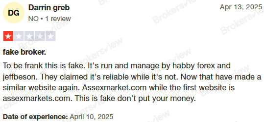 Another pointed out that Assexmarkets previously operated under a different domain. The earlier website—assexmarkets.com—was allegedly operated by Habby Forex and Jeffrey Benson, leading him to view the broker with heightened suspicion and mistrust.
