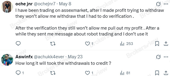 Beneath Assexmarkets’ promotional post on X, offering a 50% deposit bonus, frustrated traders voiced serious concerns. Despite issues reported, the broker did not give responses.