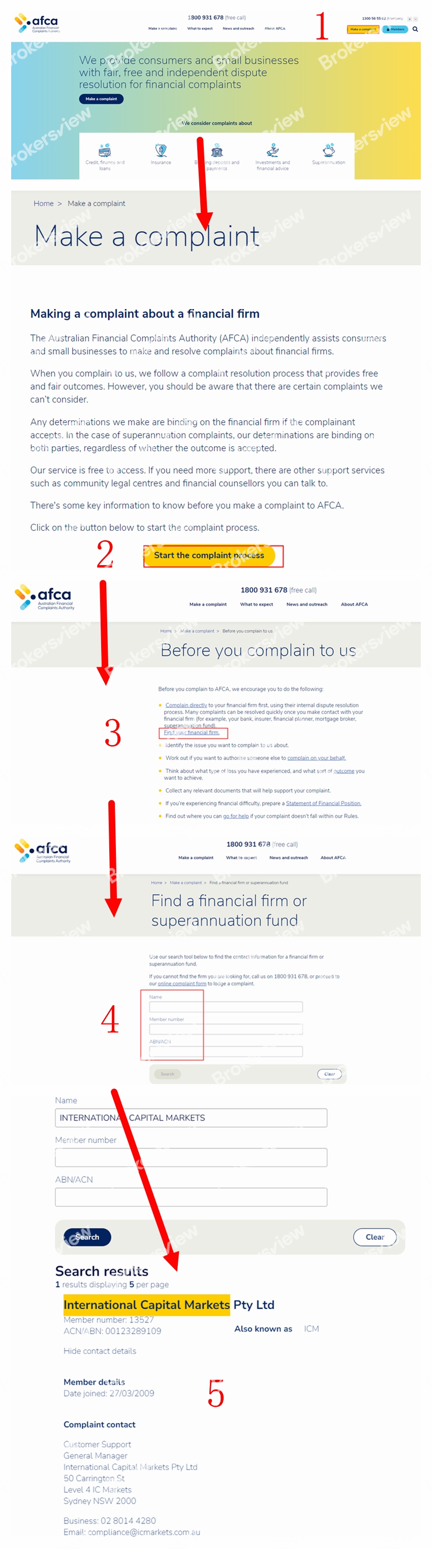 4. Visit AFCA official website https://www.afca.org.au/, And click to enter "make a complaint" - click to enter "start the complaint process" - click to enter "Find your finanacial firm" - Enter the company name, or complaint protection number, or ABN/ACN number to query company information.