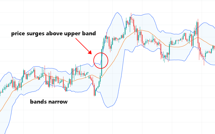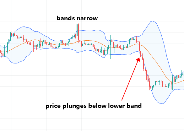 According to John Bollinger, periods of low volatility are often followed by periods of high volatility. Therefore, a volatility contraction or narrowing of the bands can foreshadow a significant advance or decline.