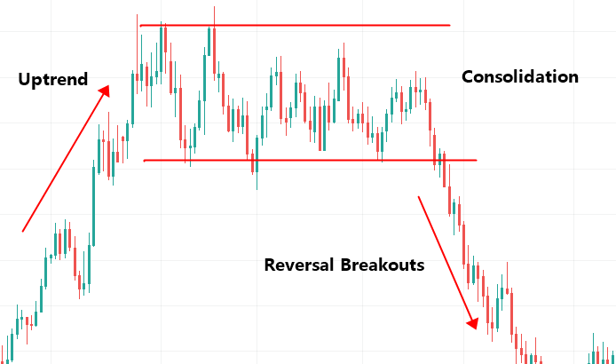 Reversal Breakouts: Reversal breakouts start off the same way as continuation breakouts in the fact that after a long trend, there tends to be a pause or consolidation. The only difference is that after this consolidation, forex traders decide that the trend is exhausted and push the price in the opposite or “reverse” direction.