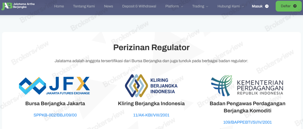 Investors need to be cautious when engaging with Jalatama Artha Berjangka. The broker's assertion that multiple authorities regulate it may be misleading, as these entities do not have jurisdiction over forex services. Thoroughly verifying the broker's regulatory status and reputation is of utmost importance.