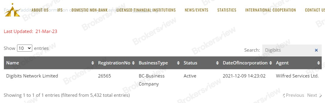 While we did find records matching this company in the Financial Services Authority of St. Vincent and the Grenadines (SVG FSA), investors must bear in mind that the SVG FSA has explicitly announced that it "does not issue any licenses to carry on the business of FOREX Trading or Brokerage or Binary Options Trading nor does the FSA 'Regulate, Monitor, Supervise or License' International Business Companies (IBCs) which engage in such activities." Consequently, Digibits' offering of financial services remains unsupervised by the relevant regulatory authority, further undermining its credibility.