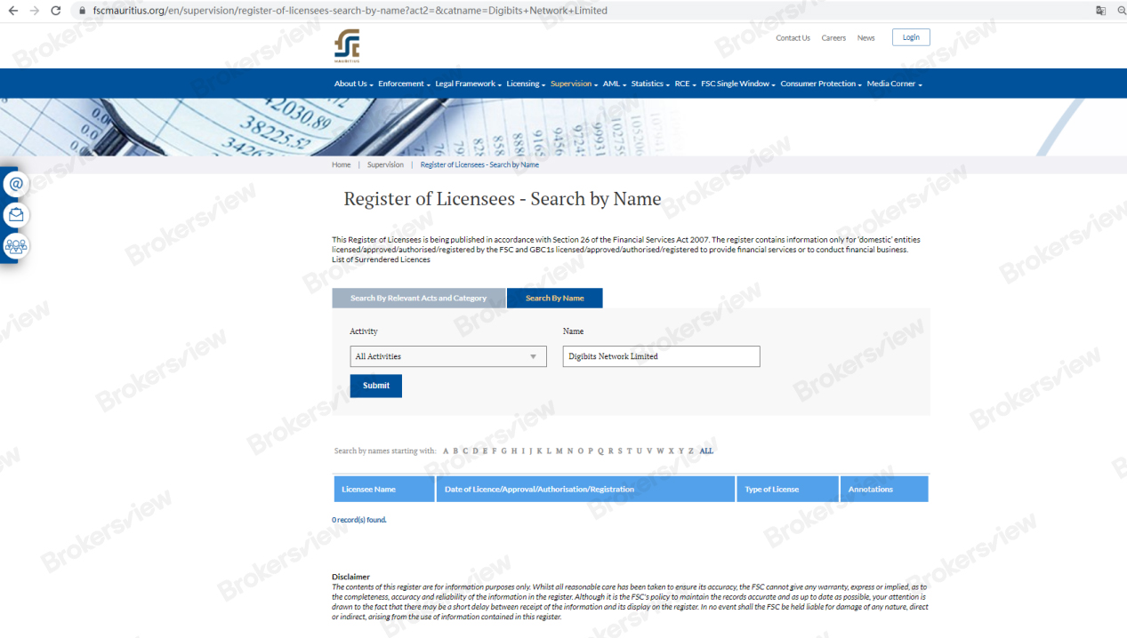 1. Lack of Legitimate Registration with the Mauritius FSC: Digibits claims to be operated by Digibits Network Limited registered in The Republic of Mauritius under license number 186940. However, our search for this company in the registry of Mauritius Financial Services Commission (Mauritius FSC) found no record of its existence. According to Mauritius law, brokers operating within the country must be authorized and regulated by the Mauritius FSC. The absence of such authorization and regulation casts doubt on the legitimacy of Digibits.